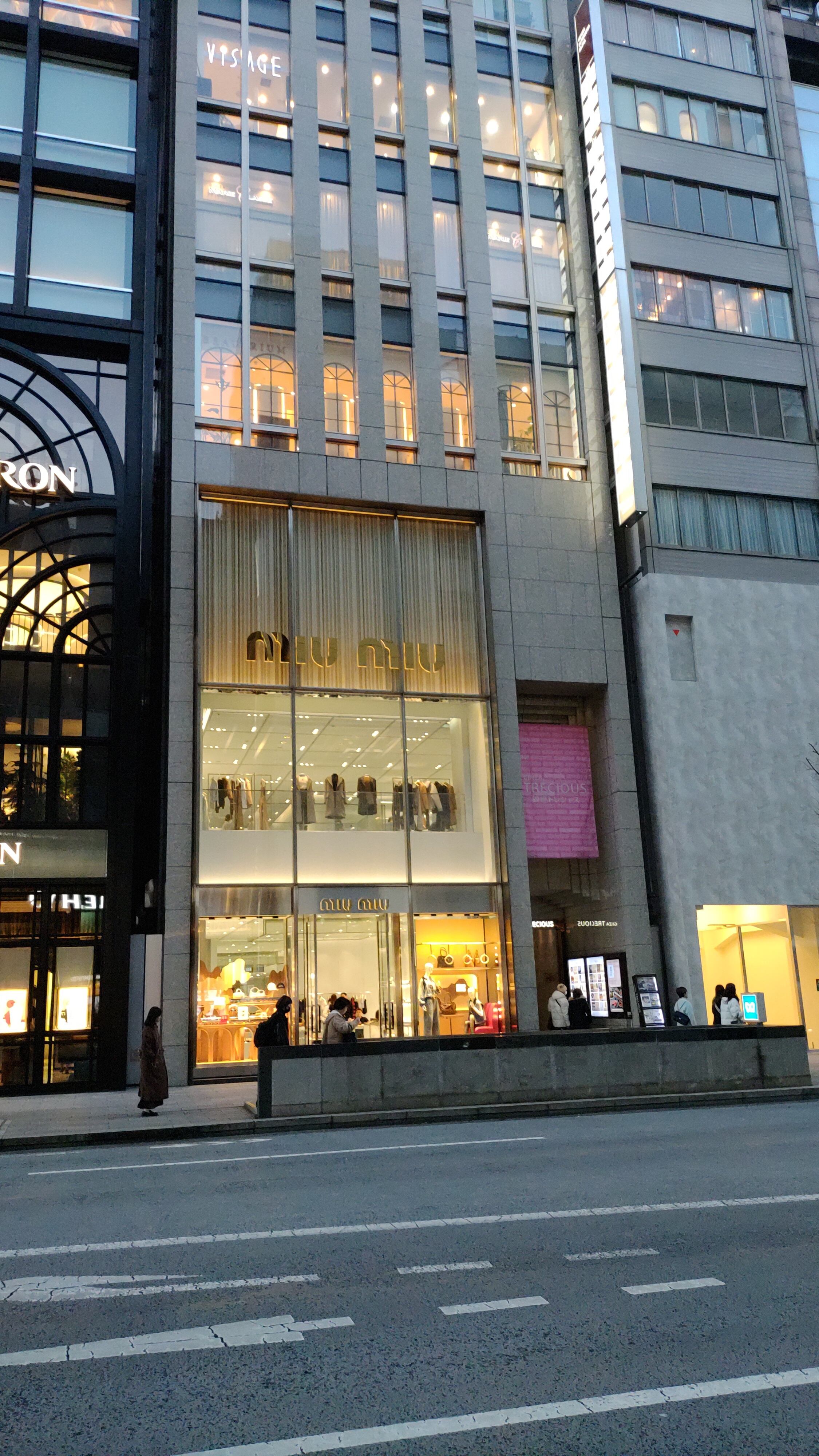 中央通り(15号)を左に曲がったmiu miuの入ったビルです。向かい側に銀座伊東屋やKOMEHYOのビルがあります。