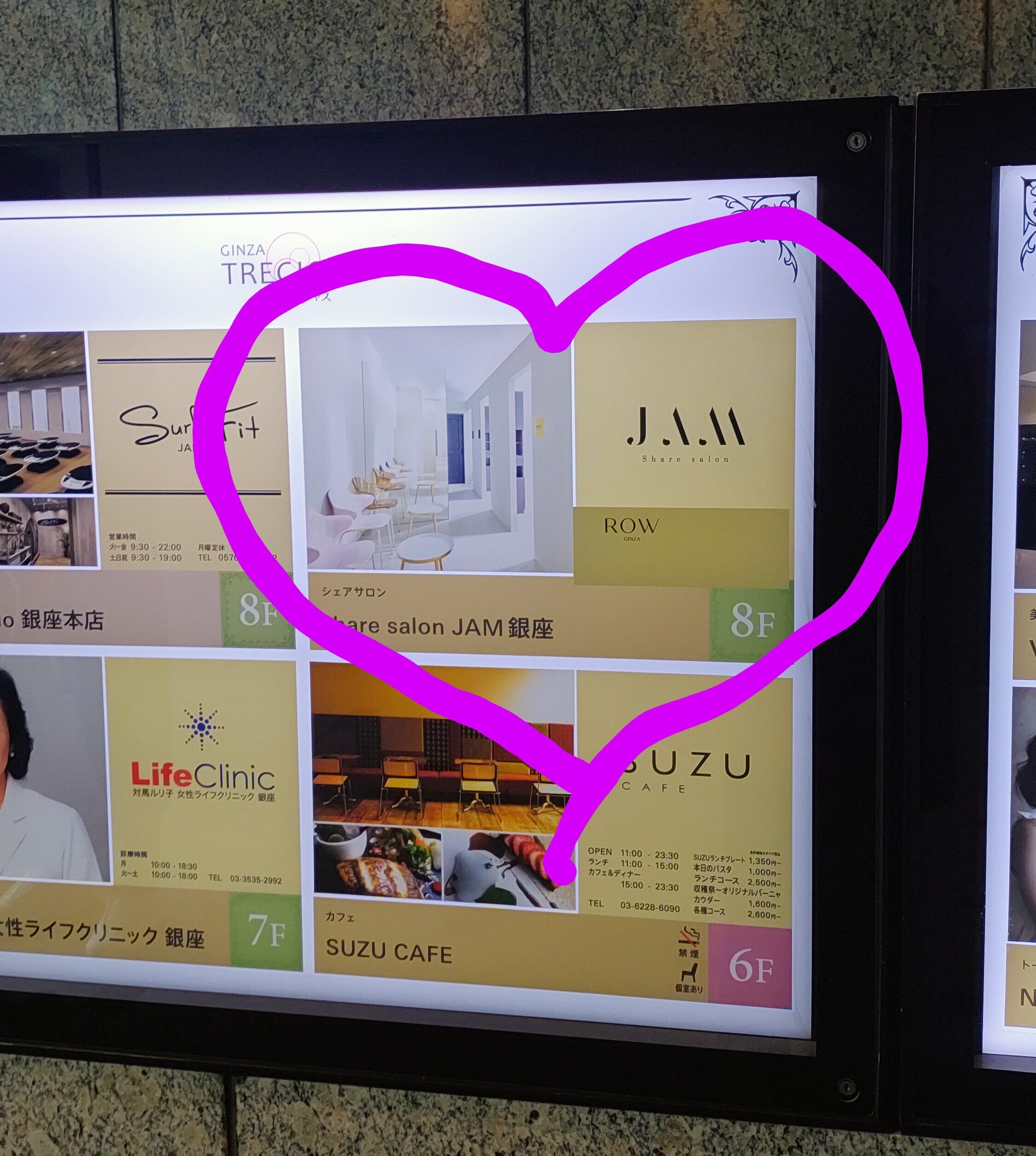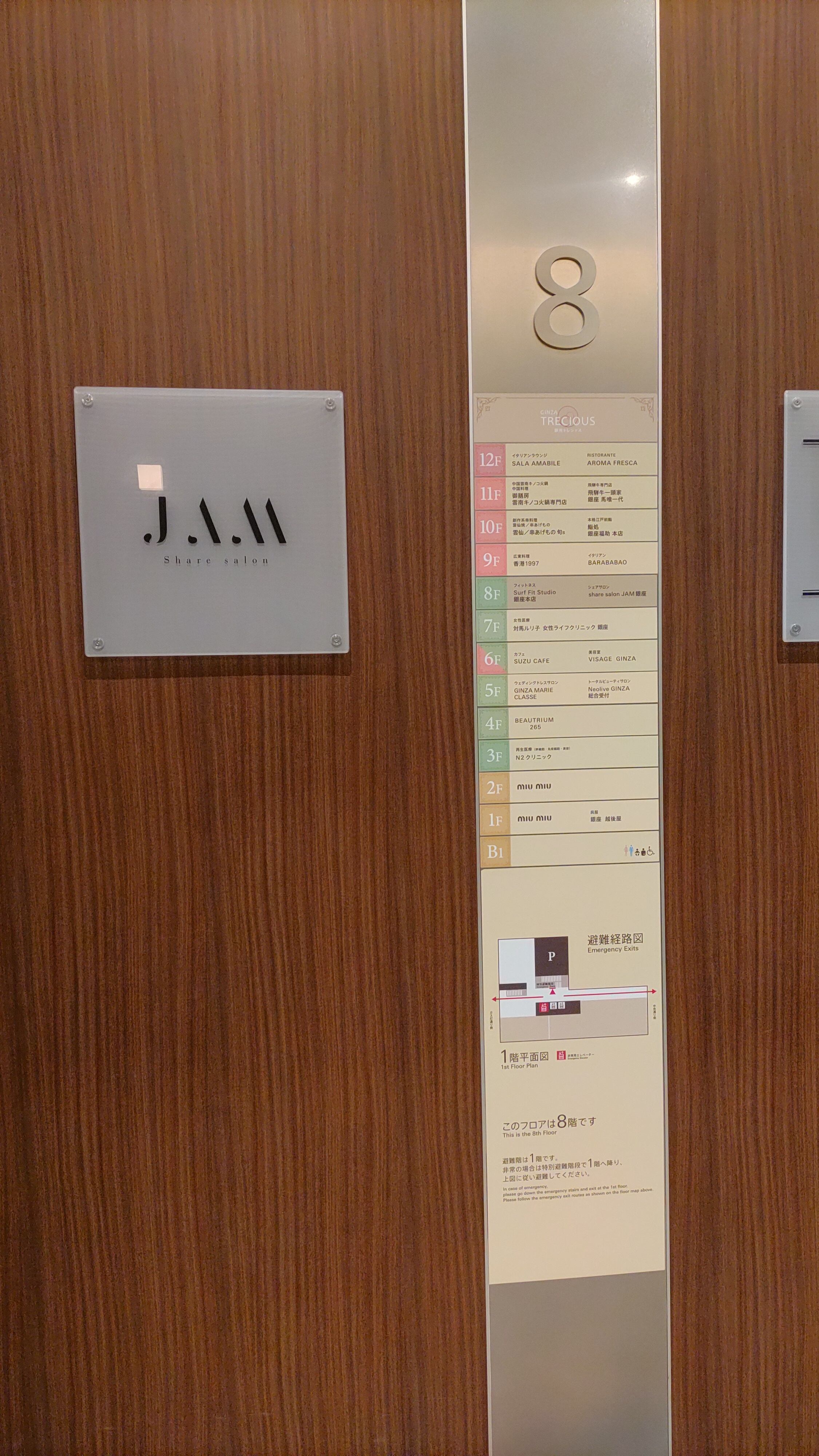 トレシャスビルのエレベーターで8階までお上がり頂くと、左側にシェアサロンJEMがあります。